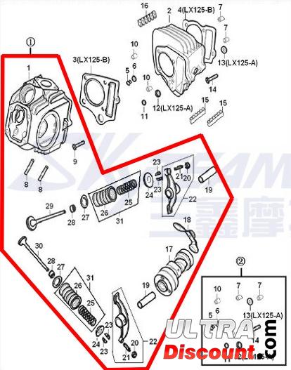 This cylinder head is suitable for engines Skyteam 125cc